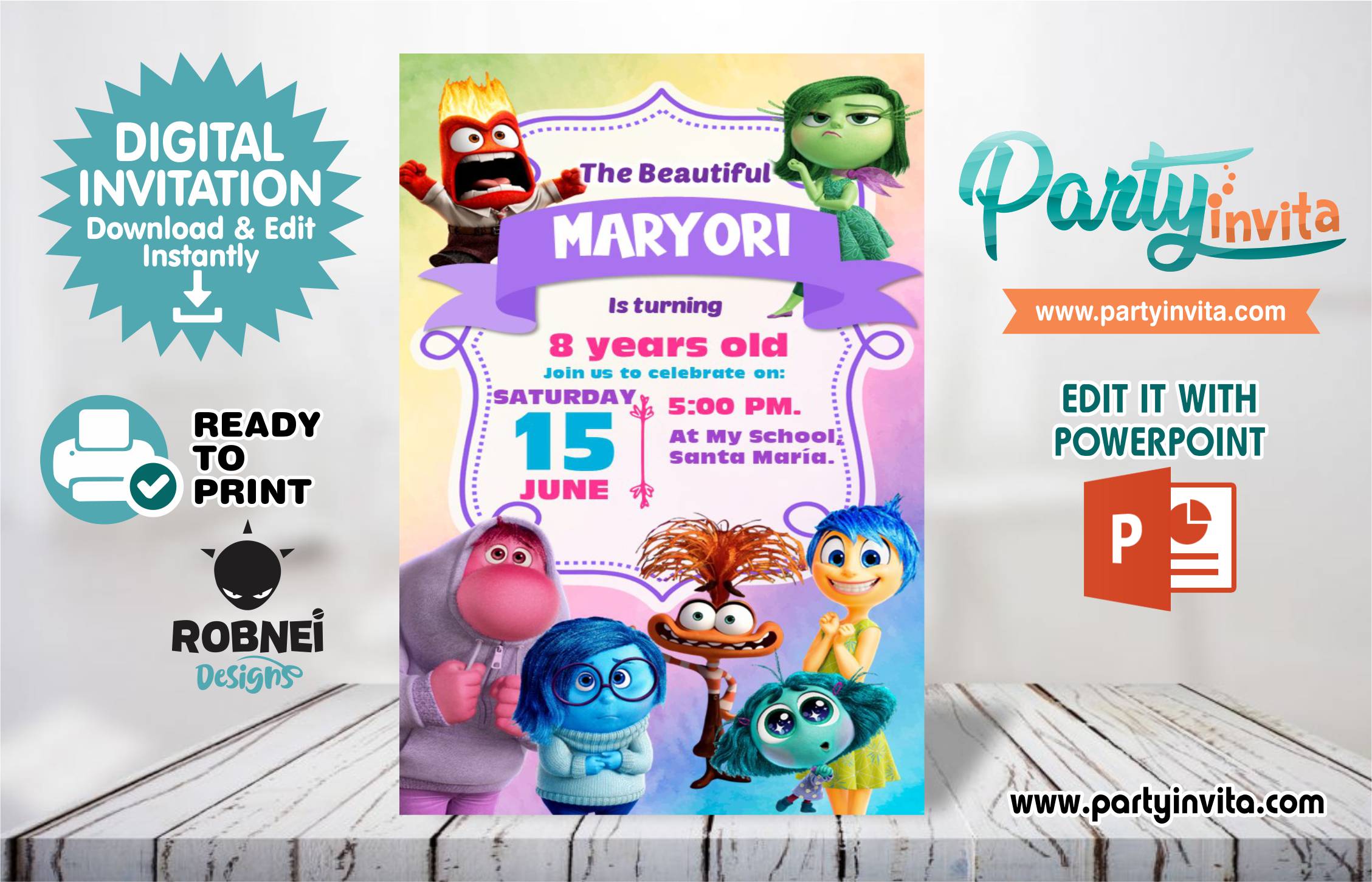 Categories: Invitations for a girl, Kids Birthdays Tags: birthday invitation, Colorful Designs, Creative Invitations, Customizable invitation, digital invitation, DIY Invitation, Editable Invitation, Event Planning, Fun Invitations, Inside Out 2 Invitation, Inside Out Theme, Kids Party Ideas, Party Planning, PowerPoint Template, Printable Invitation