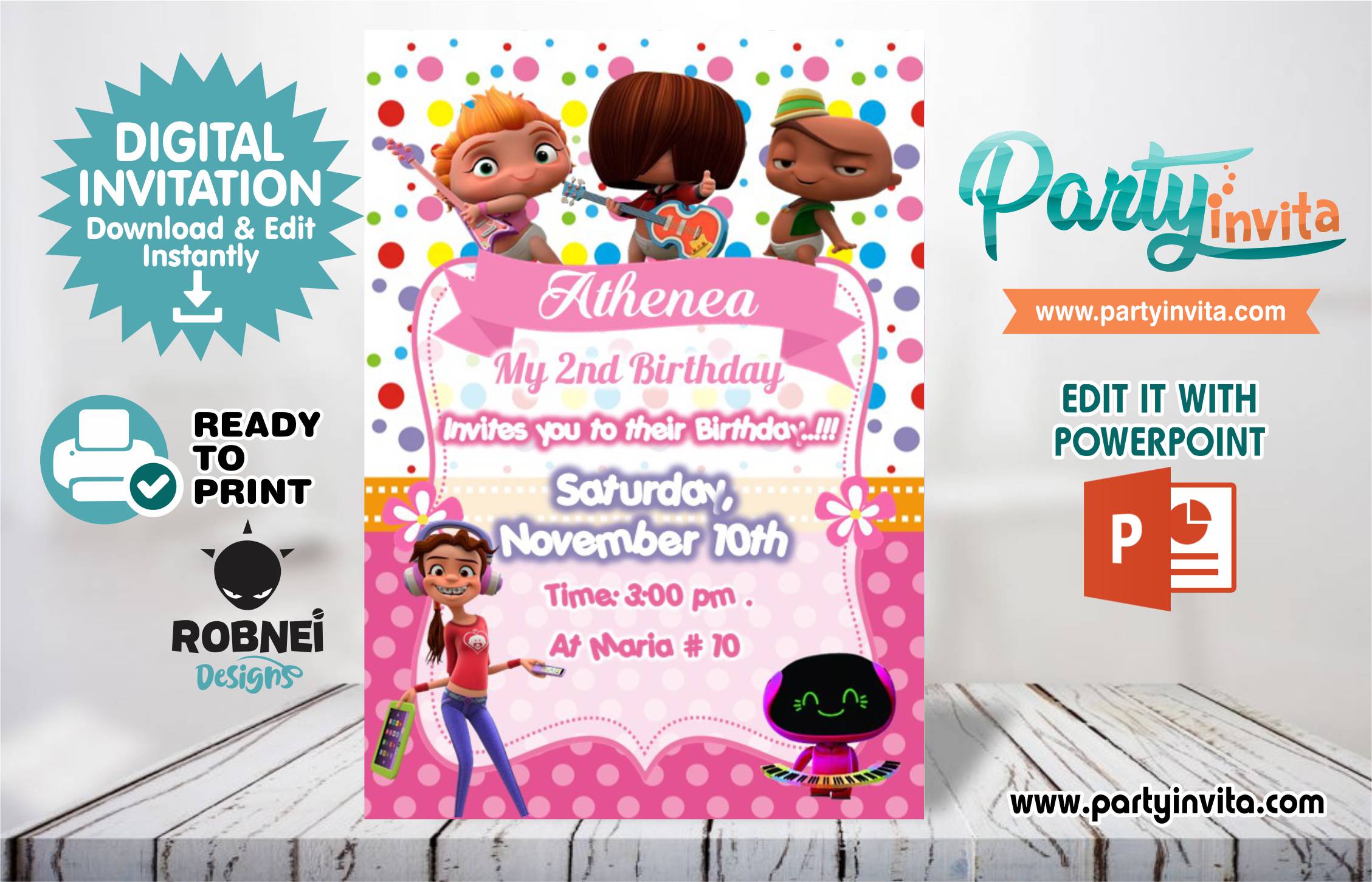 Download your editable Mini Power Rockers invitation in PowerPoint today and get ready for a fantastic party!