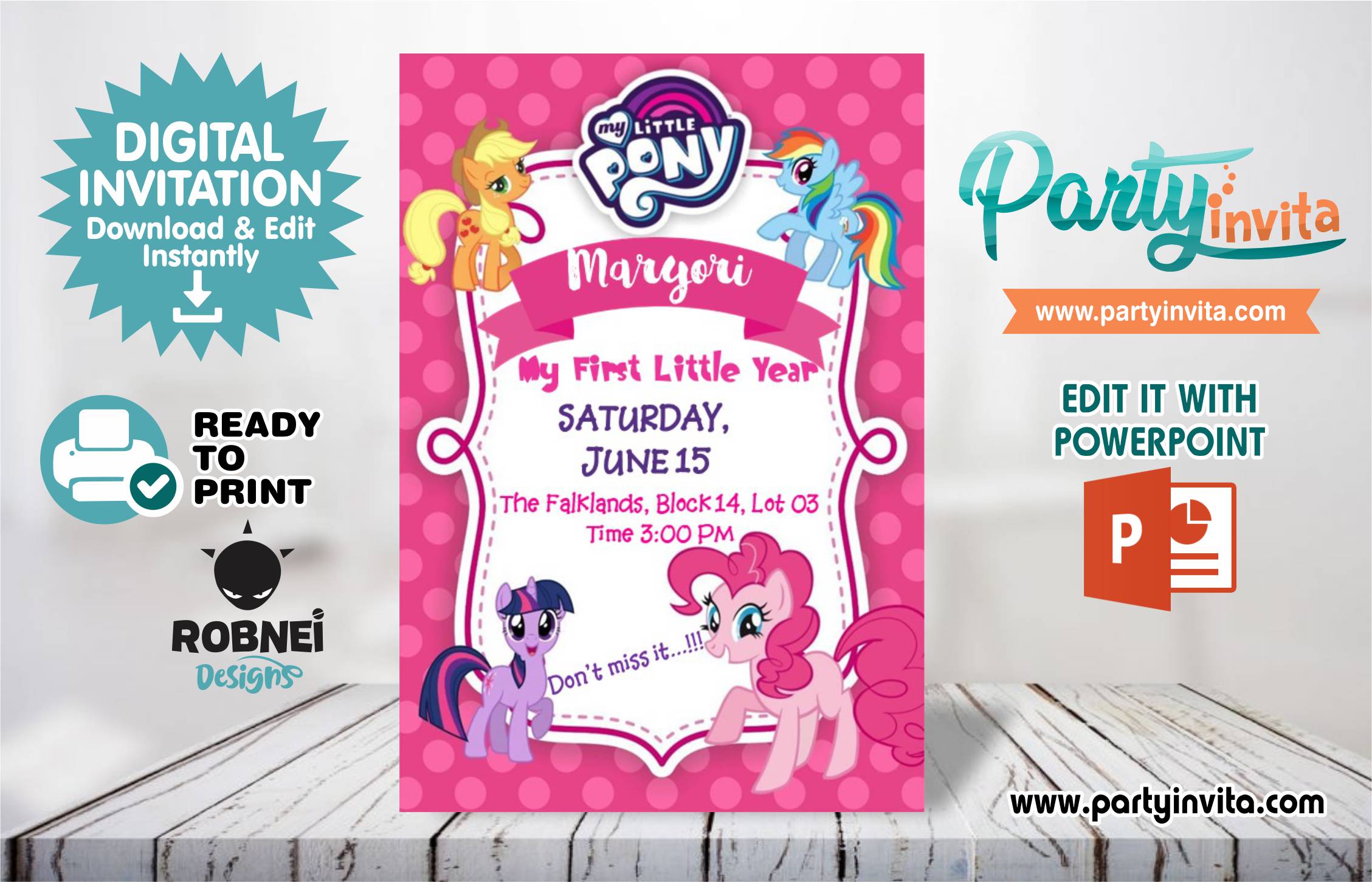 Categories: Invitations for a girl, Kids Birthdays Tags: Birthday Party, Celebration, Customizable, digital invitation, easy to edit, Editable Invitation, Fun Characters, kids party, Magical Celebration, My Little Pony, PowerPoint Template, Print at home, Quick Design, Shareable, Themed Invitation, Unforgettable Event, Vibrant Design
