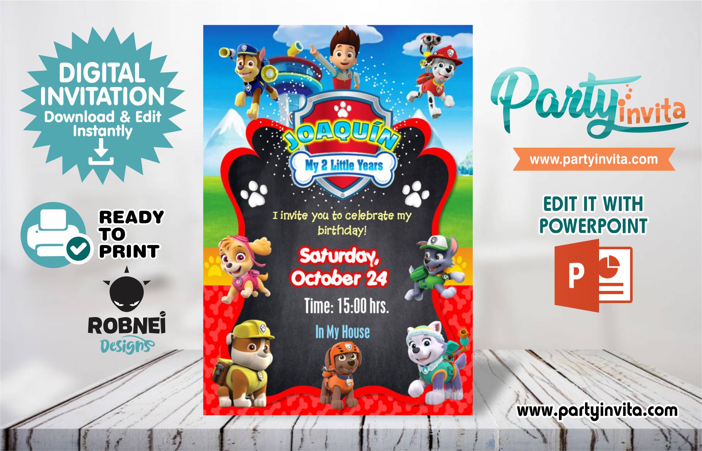Are you planning a fun and exciting party with a Paw Patrol theme? Our editable Red Paw Patrol invitation in PowerPoint is just what you need! This customizable template allows you to personalize every detail: simply open the file in PowerPoint, edit the name, date, and party details, and then save it as a PDF or video to share with your guests.